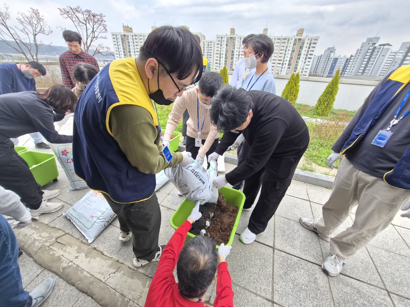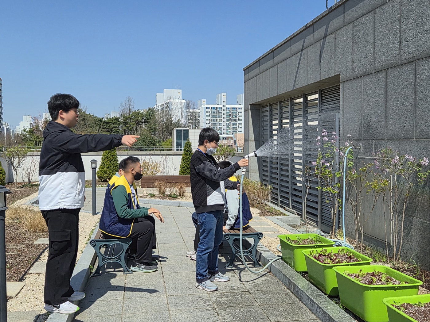 오늘 그 첫번째 활동으로 옥상에서 열심히 흙을 다듬고 모종을 심은 뒤, 물을 주는 작업을 진행하였습니다.